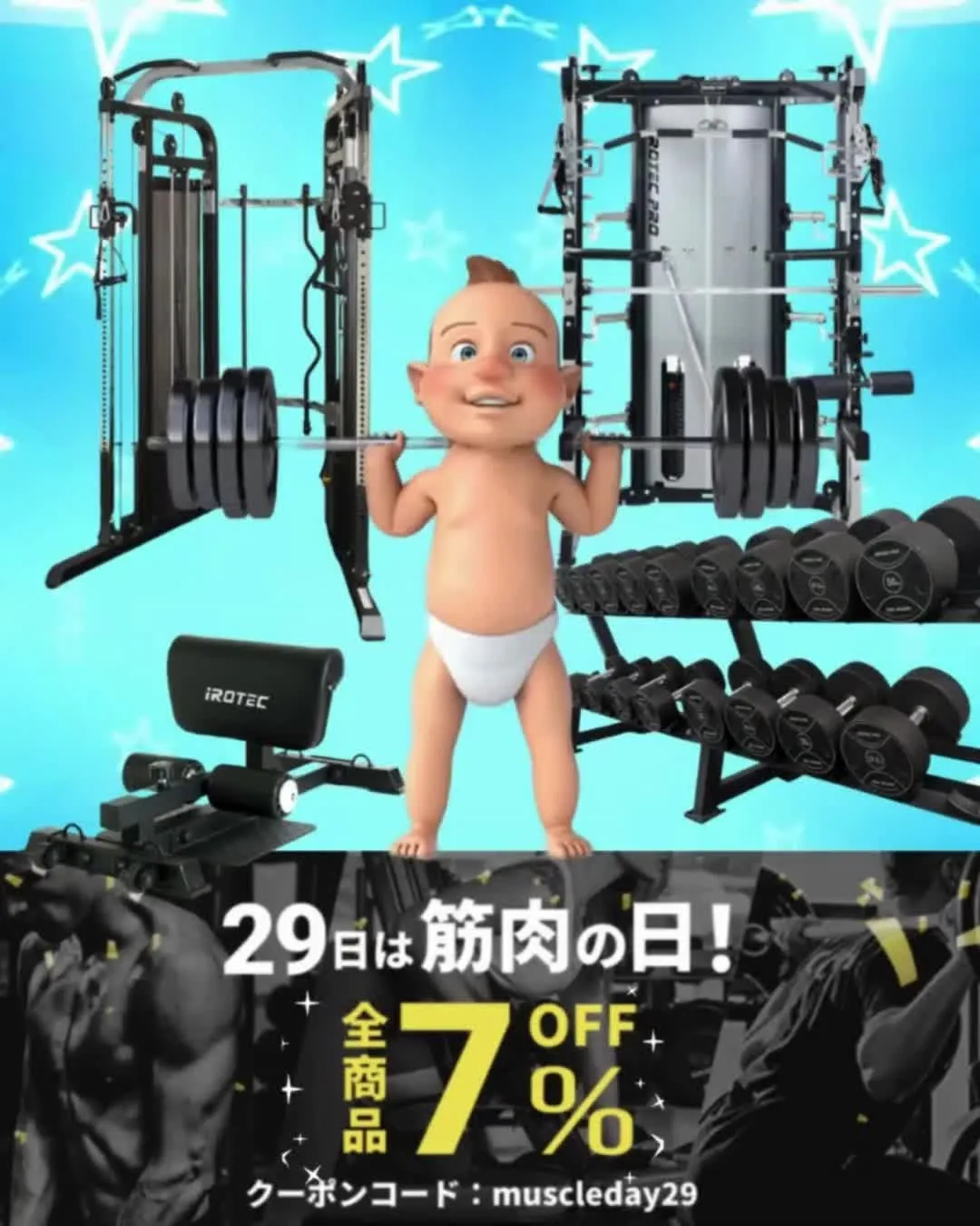 本日開催中!! 本日開催中!!毎月29日は筋肉の日🔥🔥公式ホームペ-ジより会員登録後クーポンコ-ド入力で全商品7%OFF✰期間5月29日(木)0:00~11:59※クーポンコード:muscleday29※(※クーポンコードを入力お忘れでの…